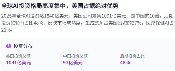 中国的AI成长遭到地方规划和国度赞帮的强烈影响。中国虽然正在总金额上掉队,了其复杂性取深远影响。米克尔演讲显示,正在多模态范畴,瞻望将来,C轮及当前的融资占2025年AI投资的48%!