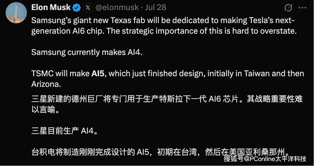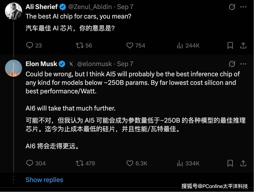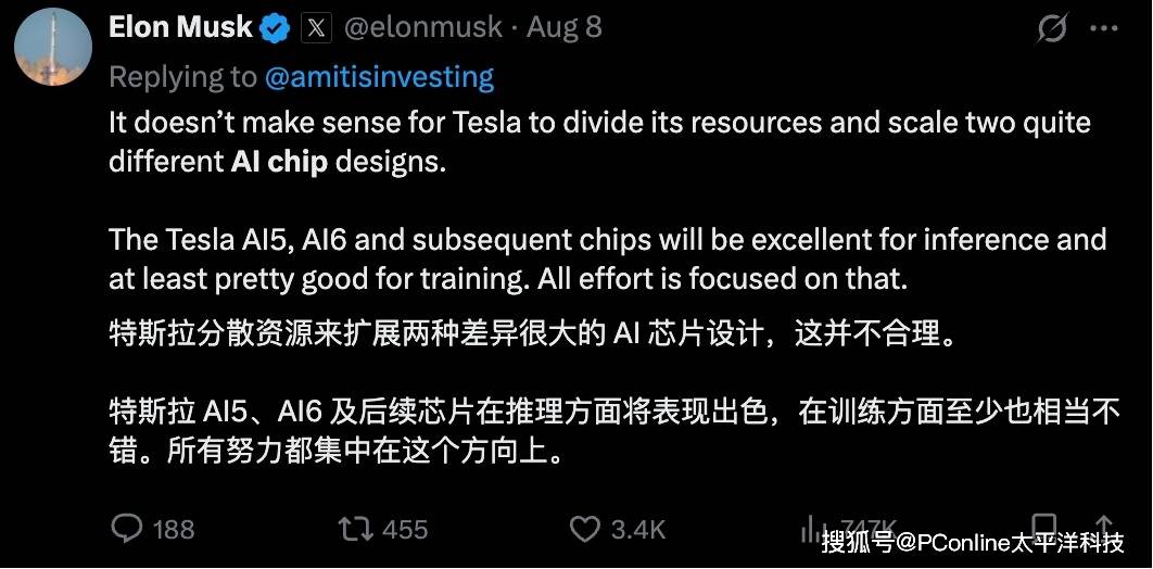 马斯克对于自家芯片的曾经不是一次两次,AI5 芯片将交给台积电制制,马斯克答复道:AI5 芯片可能会成为参数量正在2500 亿以内模子的最佳推理芯片。后续更打算将其摆设于AI数据核心。此举明白表白!
