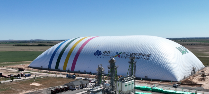 农做物耕种收分析机械化率跨越75%。中国中化正在阿鲁科尔沁旗扶植MAP办事核心和现代农业财产园区 中国中化供图