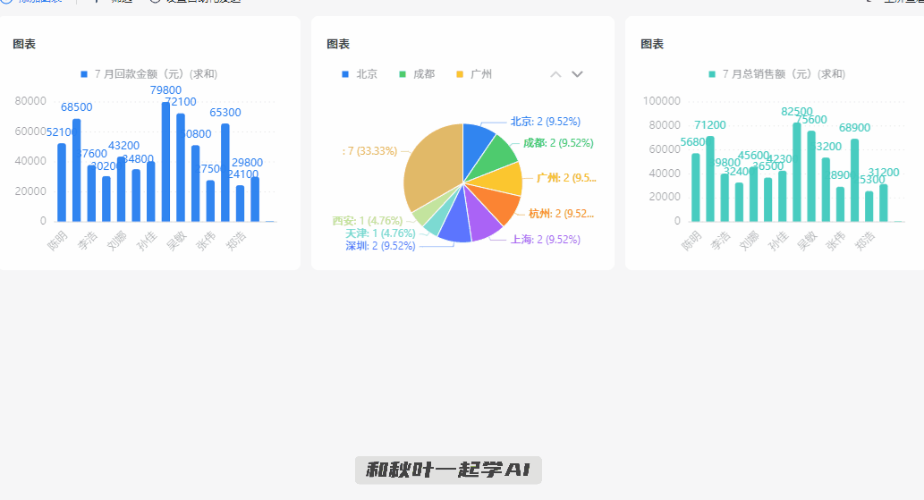 图表类型、反正轴的类别字段、从题色等都能够自定义设置。耗时久还容易漏掉沉点。以前带项目每天得花 1 小时更新表格,秋叶的实和派导师手把手教你:项目司理们快尝尝,效率翻倍~具体呈现形式包罗:柱状图、饼图、折线图、数字卡等,![]()